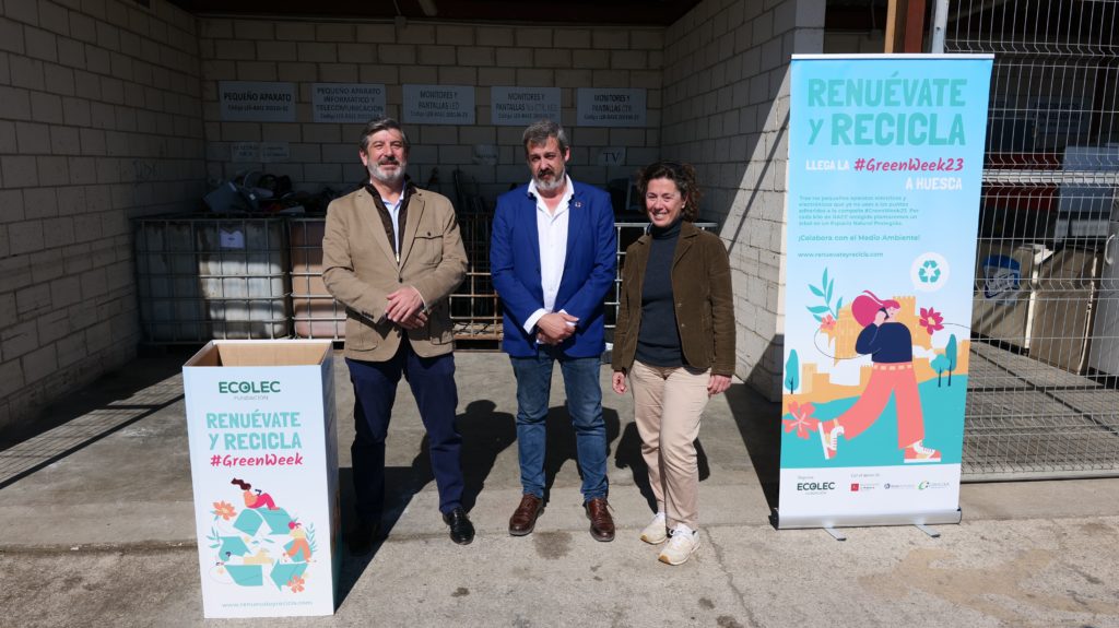 La Fundación Ecolec ha celebrado en Huesca la séptima edición #GreenWeek23 para seguir en su tarea de concienciación sobre la recogida de los residuos de aparatos eléctricos y electrónicos, conocidos por sus siglas RAEE. El acto ha contado con la presencia de Roberto Cacho, concejal de Medio Ambiente y Servicios Generales del Ayuntamiento de Huesca; Teresa Viu, gerente de GRHusa; y Luis Moreno, director general de la Fundación Ecolec.